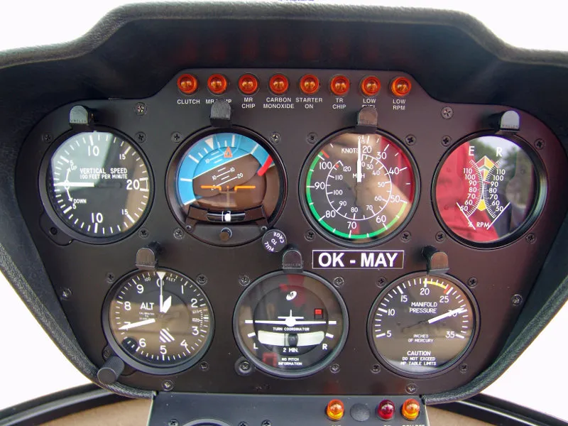 letových hodin, Ukazatel teploty a tlaku oleje, Ukazatel teploty hlav válců, Ampérmetr, Ukazatel teploty vzduchu